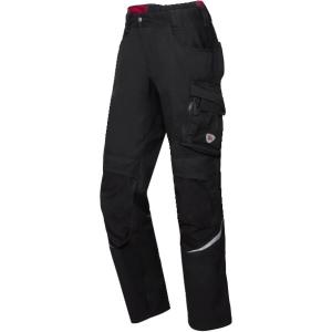 2 poches latérales avec empiècement stretch, 2 poches revolver avec fermeture à rabat, 1 grande poche cuisse avec poche smartphone intégrée, double poche mètre fixée d'un seul côté.