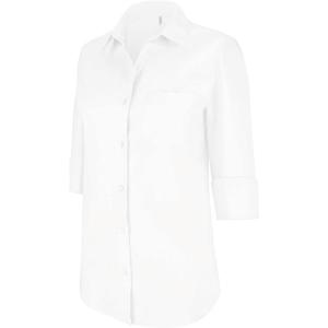 Coupe cintrée, manches 3/4. Col non boutonné, boutons ton sur ton, poche poitrine côté gauche en V, 1 bouton de rappel, bas arrondi.