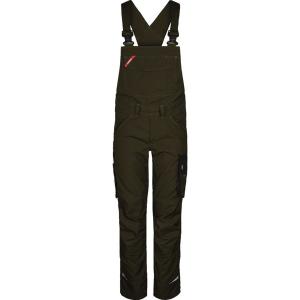 Nombreuses poches, dont une poche bavette avec fente pour stylos, une grande poche zippée sur l'envers de la bavette, 2 poches en biais sur le devant, 2 poches revolver avec rabat et fermeture velcro, une poche cuisse avec poche zippée, une poche mètre.