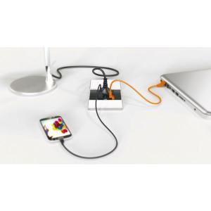 Bloc Réf. 100584 : offre une prise électrique avec mise à la terre, une prise USB, et une prise réseau RJ45. 2 clapets coulissant protègent la connectique quand celle-ci n'est pas utilisée. Livré avec un cordon d'alimentation de 2 m.