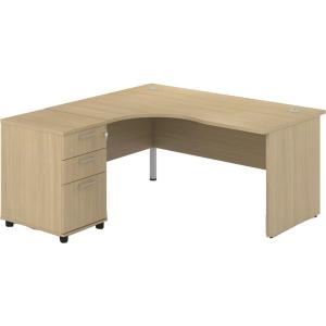 Bureau droit en mélaminé décor chêne blanchi avec plan de travail de 25 mm d'épaisseur.