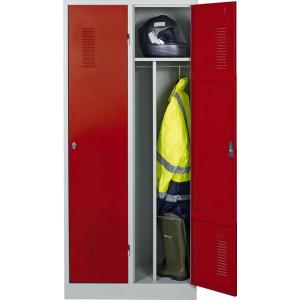 Porte à raidisseurs horizontaux avec évents d'aération haut et bas, 1 porte-étiquettes embouti et 1 fermeture par moraillon porte-cadenas.