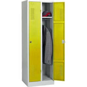Porte à raidisseurs horizontaux avec évents d'aération haut et bas, 1 porte-étiquettes embouti et 1 fermeture par moraillon porte-cadenas.