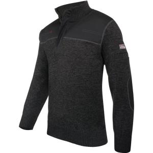 Bords côtes corps et poignets, renforts coudes et épaules.