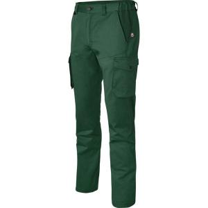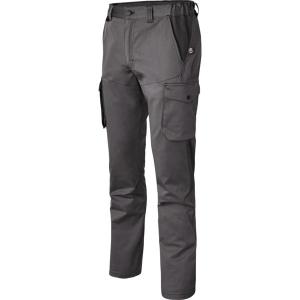 Poches italiennes. 2 poches cuisse plaquées avec compartiments. 1 poche plaquée au dos avec partie basse volante. Accroche clefs.